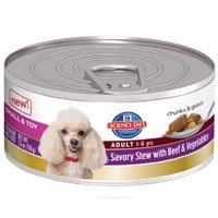 "Hill's Science Diet Savory Stew with Beef & Vegetables Adult Small Toy Breed Canned Dog Food 24/5.5-oz cans" Overview